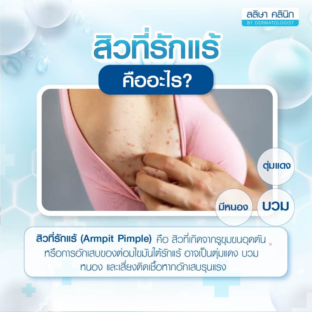สิวที่รักแร้ (Armpit Pimple) คือ สิวที่เกิดขึ้นบริเวณผิวหนังใต้รอบแขน หรือที่เรียกกันว่ารักแร้ ซึ่งเกิดจากการอุดตันของรูขุมขนหรือการอักเสบของต่อมไขมันในบริเวณนั้น สิวบริเวณนี้อาจมีลักษณะเป็นตุ่มแดง บวม และบางครั้งอาจมีหนองหรือเกิดการติดเชื้อได้ในกรณีที่อักเสบมากขึ้น